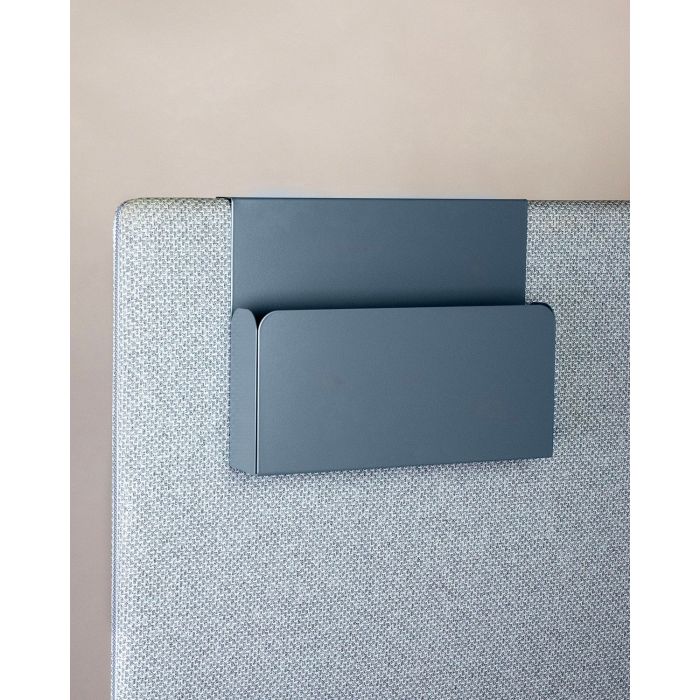 Stilrent A4-fack i lackad metall att hänga över A30-skärmar.