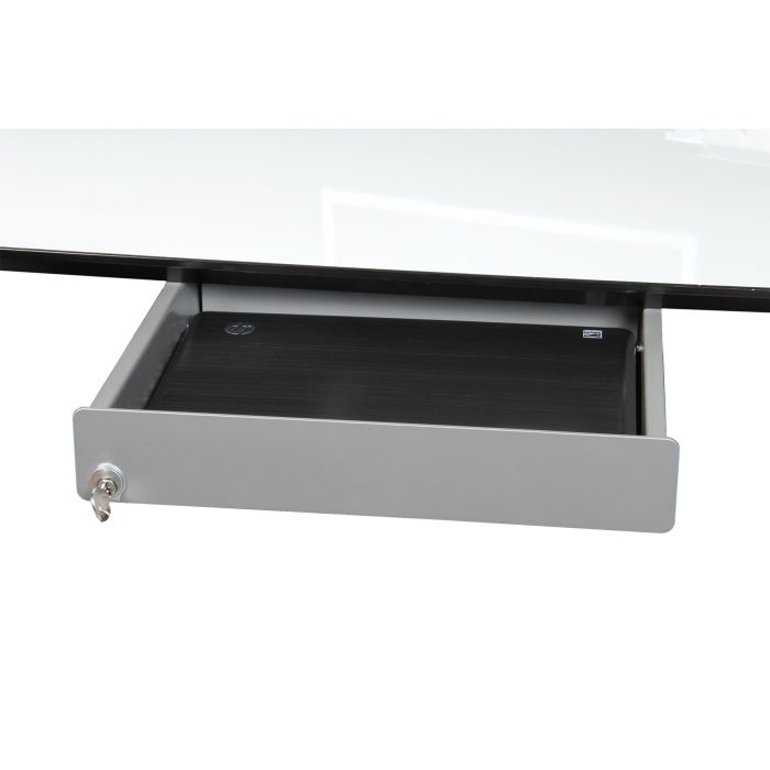 Låsbar låda för laptop. Fästes under skrivbordsskivan.