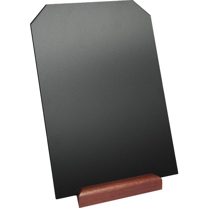 Griffelskylt på fot av rödbetsad bok. Perfekt att ha på bordet, i kassan i receptionen m.m. Skyltarna är tillverkade i en kraftigare plast som ej är böjbar. Rengör skrivytan med en fuktig trasa.