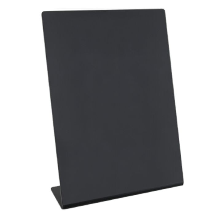 Griffelställ i akryl med en matt sida för skrift med kalkpennor. Tavlan är lätt lutad. Observera att den inte är anpassad för kritor då de repar plasten. Finns i flera olika storlekar.