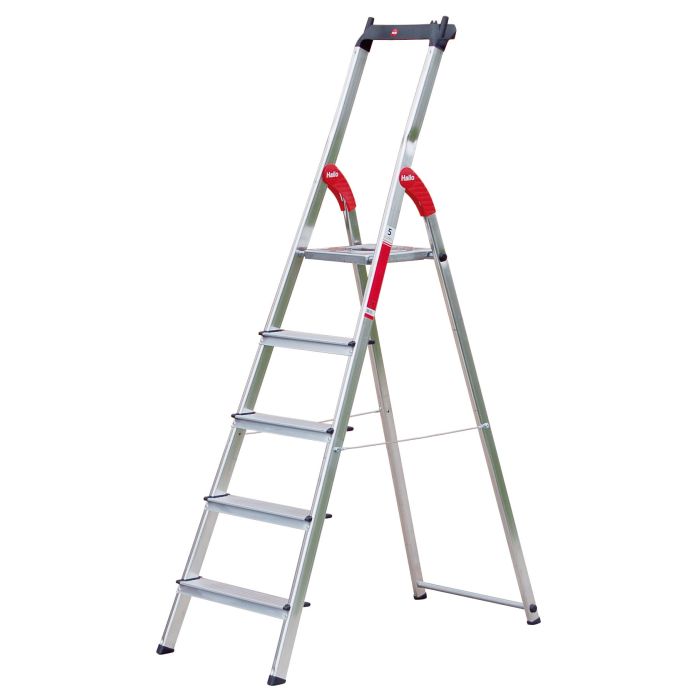 Hushållsstege Hailo är en mycket stabil trappstege i aluminium med ståplattform och rymlig verktygshylla i plast, med flera smarta inbyggda funktioner. Fotstegen är räfflade för att minimera halkrisken.