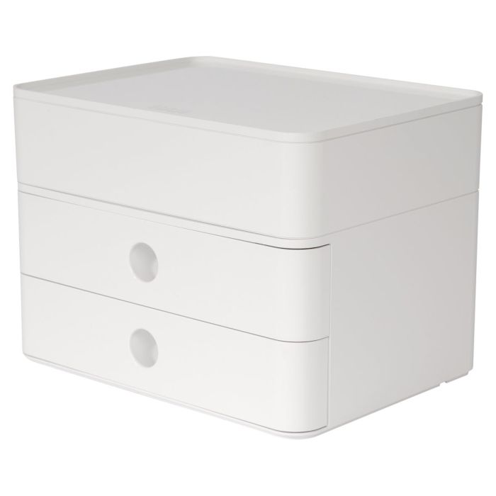 Förvaringsenheten Allison Smart-Box plus från HAN, är en stapelbar förvaringsbox med 2 utdragbara lådor och 2 redskapslådor och 1 bricka.