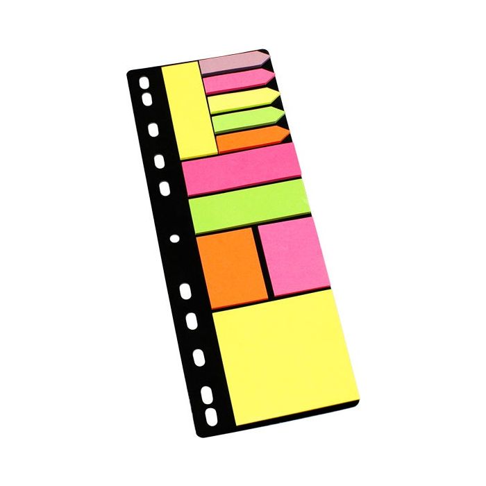 4 olika former i olika attraktiva färger och för olika ändamål. Sätt in blocket i pärmen så vet du dessutom var du har dem, använd sidmarkörerna för att markera viktiga sidor och använd de större notisarna för att beskriva den viktig informationen.