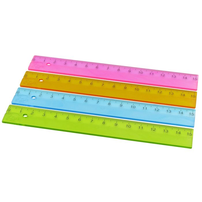 Linjaler av transparent färgad plast i sorterade färger. Hjälpmedlet på kontoret, i skolan och i hemmet när du behöver mäta eller dra raka linjer.