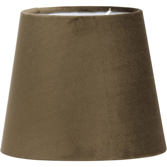 Lampskärm Mia i ett härligt sammetstyg. Lampskärmen är enkel och snygg vilket gör att du kan framhäva lampfoten den sitter på och skapa olika uttryck i din inredning. Lampskärmen har ett klofäste, vilket man fäster på glödlampan. -- Brun -- Bredd: 17 cm