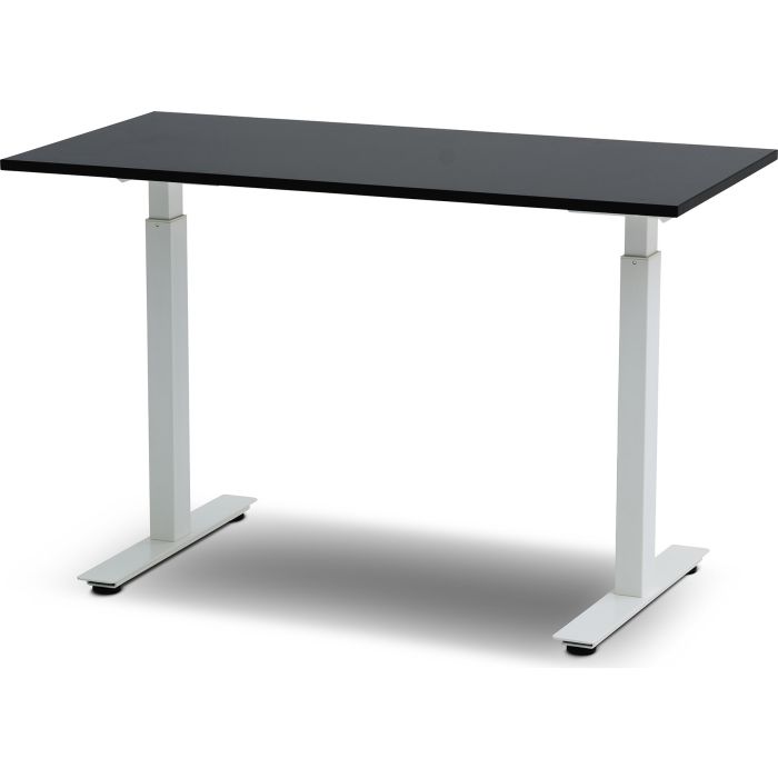 El-Skrivbord Madrid med 2-motor stativ 600 slag. Madrid ett bord med T-benstativ. Utmärkt som konferensbord eller arbetsbord. Flexibel sarg mot bordsskivan. Justerbara fötter. • Silvergrått underrede • Svart bordsskiva i laminat • Mått: 1200 x 800 mm .