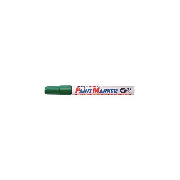 Märkpenna Artline 400 XF Paint Marker som klarar att skriva på de flesta "tuffa ytor" som gummi, trä, metall, sten, plast och glas. Väderbeständigt, permanent och vattenfast bläck utan Xylene för både inom- och utomhus. -- Färgbeständig, heltäckande färg -- Permanent -- Snabbtorkande -- Aluminiumhylsa -- Rund spets 2,3 mm -- Xylenfri -- Finns i flera färger