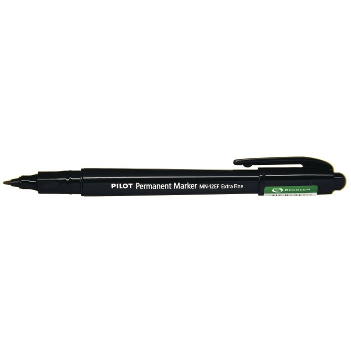 Märkpenna Pilot Permanent Marker Begreen för permanent märkning på papper, metall, glas, plast och keramik. Klarar både värme och kyla. -- Svart -- Rund spets med en linjebredd på 0,6mm -- Xylene fritt bläck -- Miljöinfo: Tillverkad av 89% återvunnet material (returplast)