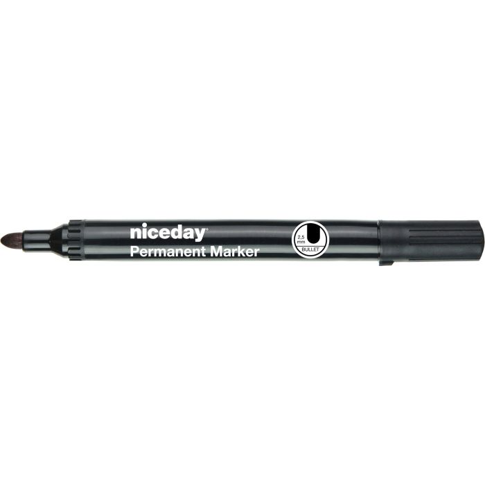 Märkpenna Niceday Permanent Marker med rund spets för märkning av alla slags ytor även glas, metall och trä. Alkoholbaserad, snabbtorkande och nästan luktfri..