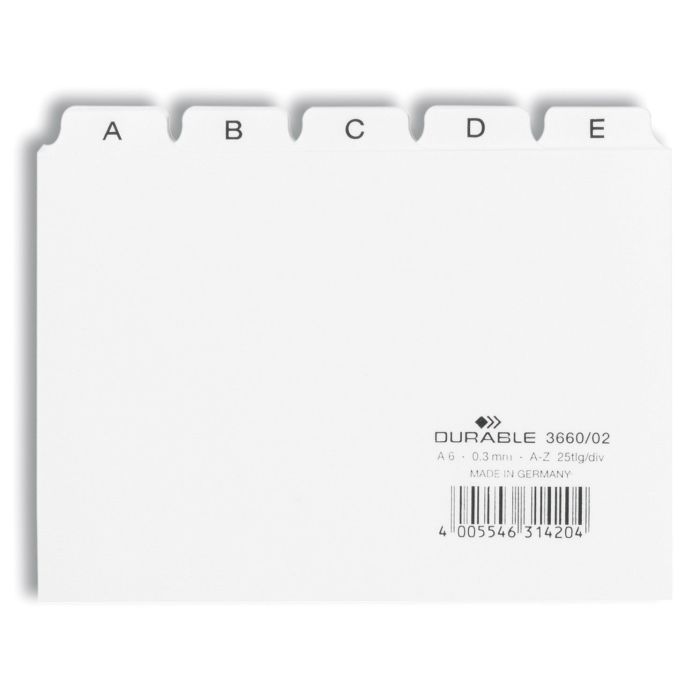Ledkort vit pp-plast tryckta A-Z. Passar till kortlådor i samma storlekar. En enkel sortering av olika typer av information och förvaring. • Vit • Finns i flera storlekar