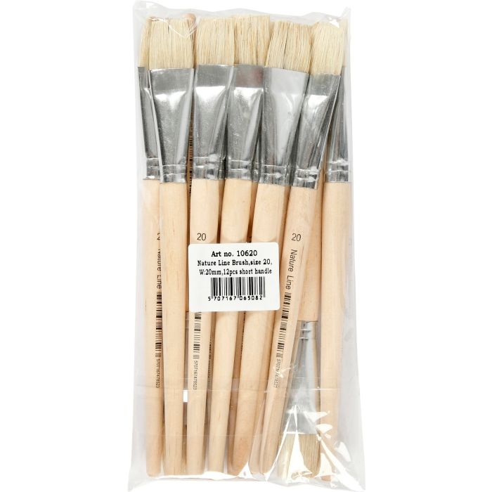 Natur Line svinbortspenslar med korta skaft. Platta svinborstpenslar med olackat träskaft som passar till tjockflytande färger.