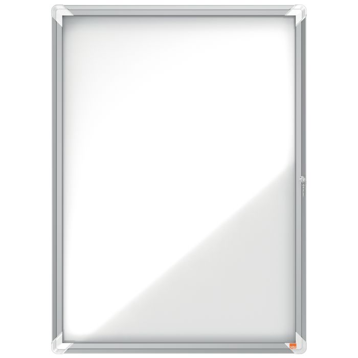 Anslagstavla låsbar Ute Magnetisk Nobo. Låsbar väderbeständig magnetisk anslagstavla för utomhusbruk med glasdörr på gångjärn och sidolås.