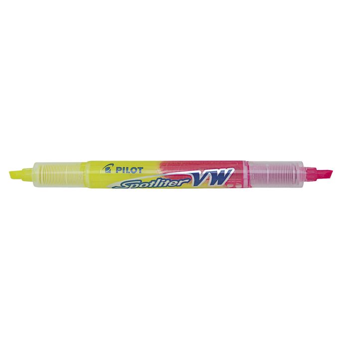 Överstrykningspennan Spotliter VW med två spetsar i superklara flourocerande färger – gul och rosa i en och samma penna. Praktiskt när du inte är på din plats på kontoret.