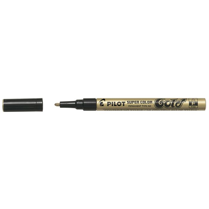 Märk- och dekorationspennorna Pilot Super Color guld och silver har ett heltäckande permanent bläck utan lösningsmedel som fäster på alla slags underlag. Lyfts fram extra fint på mörkare färger.