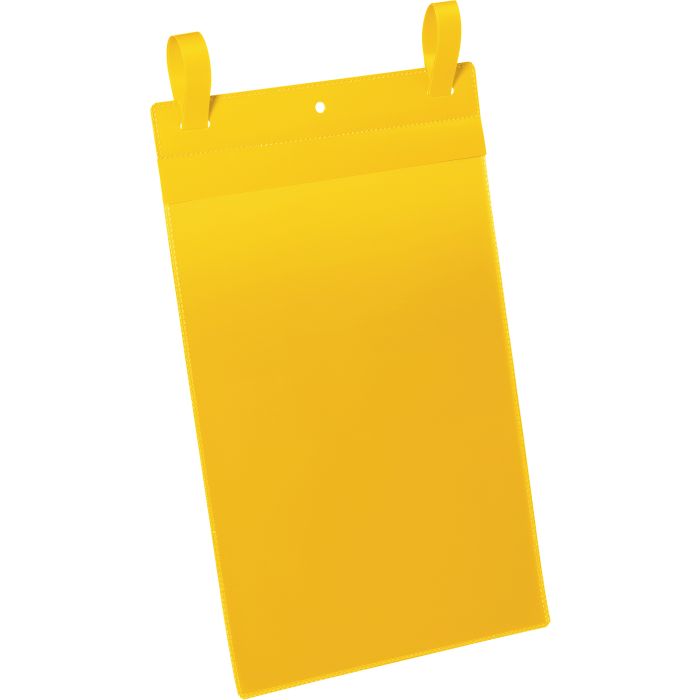 Plastfickorna av slitstark polypropylene går att läsa med skanner. Ett lock gör att inlagan skyddas mot smuts och fukt även utomhus. Fästs med två pilformade band som träs igenom hålen i fickans överkant och sitter sedan ordentligt fast på gallret. Gratis mall för etiketten finns på www.duraprint.se. -- Gul -- Innermått: A4S (210x297 mm B x H) -- Yttermått: 223x530 mm (B x H) -- 50 st/fp