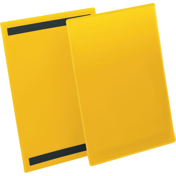 Två magnetremsor på baksidan gör att fickan sitter stadigt på plats. Gratis mall för etiketten finns på www.duraprint.se. -- Gul -- Innermått: A4S (210x297 mm B x H) -- Yttermått: 223x313 mm (B x H) -- 50 st/fp