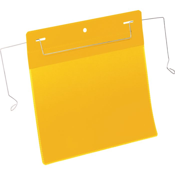 Plastfickorna av slitstark polypropylene går att läsa med skanner. Ett lock gör att inlagan skyddas mot smuts och fukt även utomhus. Fästs med en galvaniserad, flexibel trådbygel. Gratis mall för etiketten finns på www.duraprint.se. -- Gul -- Innermått: A5L (210x148 mm B x H) -- Yttermått: 223x218 mm (B x H) -- Yttermått med ståltråden:329x226 mm (B x H) -- 50 st/fp