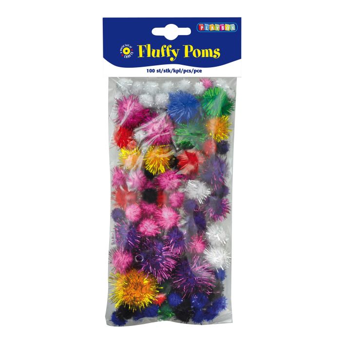 Glittriga pompombollar för dekoration av olika pyssel. Kombineras bra med piprensare för att göra dina egna festliga skapelser.