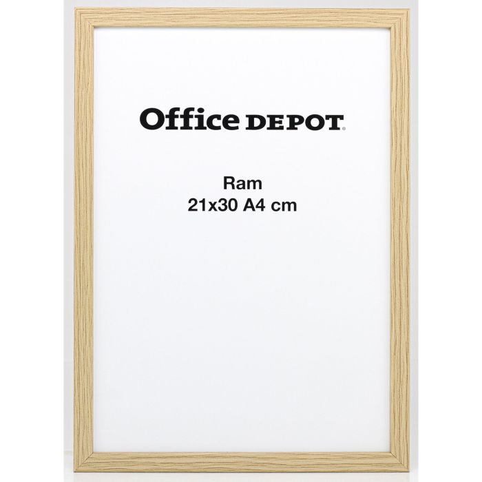 Träramen har ett polystyrenglas och ett bakstycke av MDF med ett bakstöd så att den kan ställas på ett bord. Kan monteras både liggande och stående.