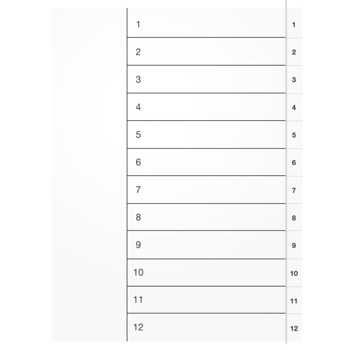 Praktiska A4 pärmregister i vit polypropylenplast. Registren är multihålade med rubrikblad och svart fliktryck. De förtryckta avdelarna är användarvänliga, stabila och ger enkel indexering och identifiering av innehållet. Avdelare underlättar organisering. -- Styckförpackade med rubrikblad -- Multihålade för pärmar -- Vit med svart tryck -- A4 --120 mikron -- Miljöinfo: Tillverkat av Polypropylenplast (PP)