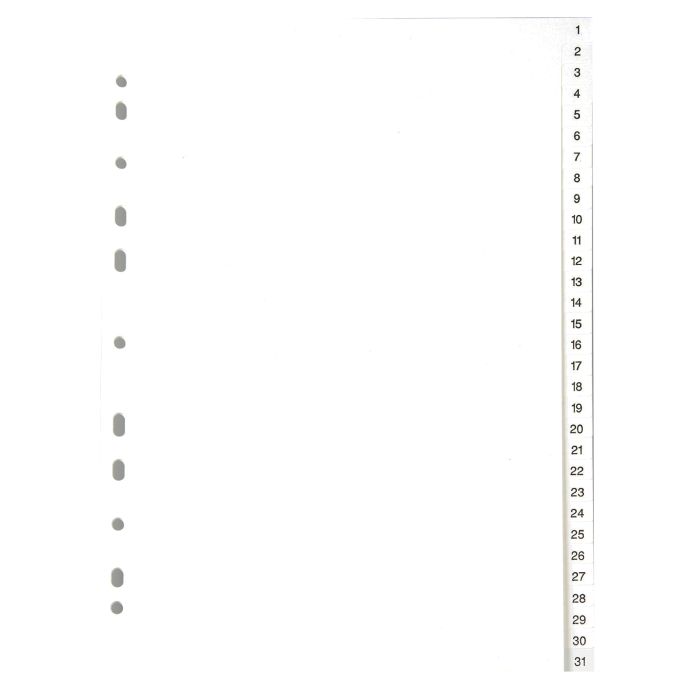 Office Depots praktiska A4 pärmregister utan försättsblad tillverkade av vit PP-plast. Multihålade för pärm och utan försättsblad. Svarta fliktryck som ger dig en bra översikt.