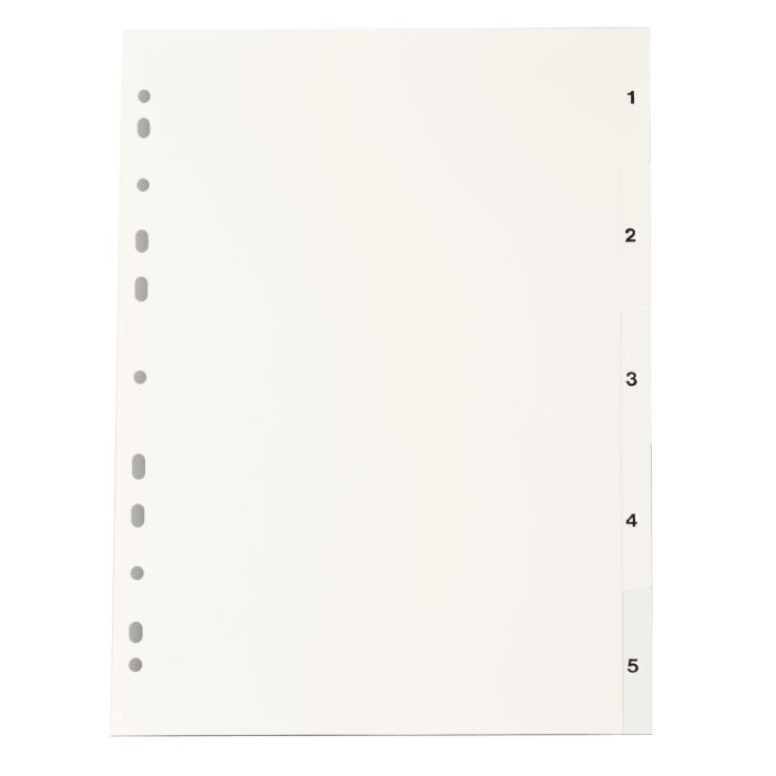 Office Depots praktiska A4 pärmregister utan försättsblad tillverkade av vit PP-plast. Multihålade för pärm och utan försättsblad. Svarta fliktryck som ger dig en bra översikt.