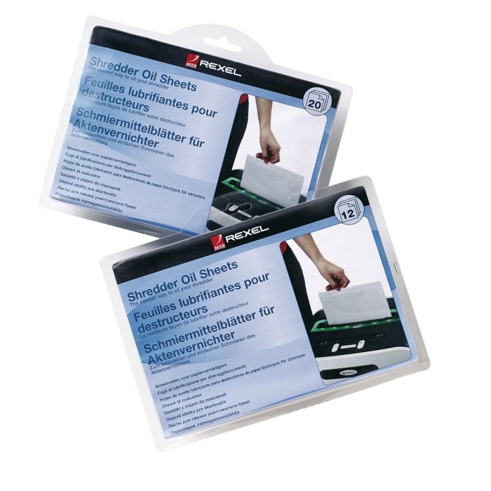 Oljeark från Rexel som enkelt och snabbt tar hand om rengöring och oljning av dokumentförstöraren så att den håller länge och utför jobbet utan trassel.