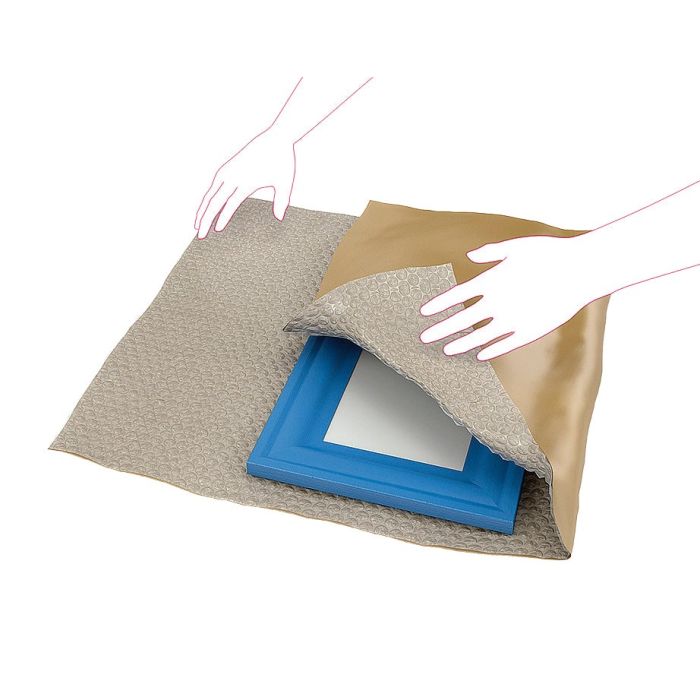 Bubbelplast Sealed Air AirCap med toppapper för extra bra stötdämpning och skydd. Co-extruderad film med barriäregenskaper som förhindrar luftgenomsläpp, laminerat med kraftpapper för bästa skydd.