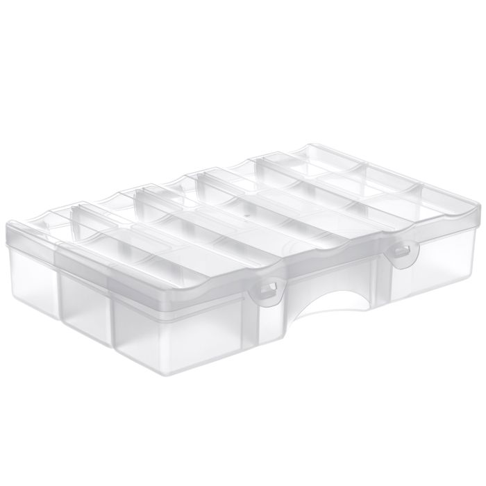 Förvaringslåda/organizer i mellanstorlek från SmartStore med mellanväggar för förvaring av småsaker tex skruvar, muttrar, sybehör och fiskedrag. De flyttbara facken kan användas för att skapa flexiblel ordning på pennor, och annat kontorsmateriel så som gem, häftstift mm.