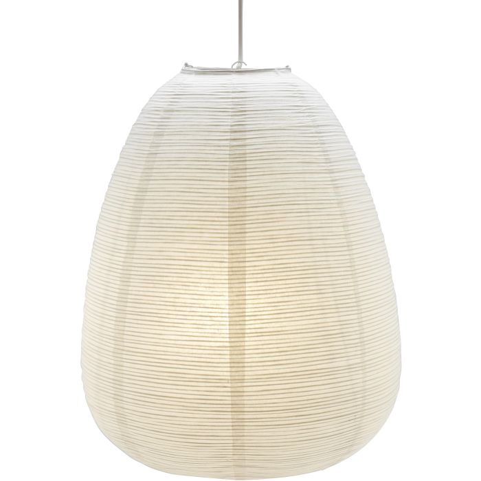 Takskärm / Taklampa Maki vit Ø430 mm. Rispappersskärm Maki med tät oregelbunden metalltråd som skapar ett vackert mönster. Maki är äggformad. Levereras utan lampsladd.