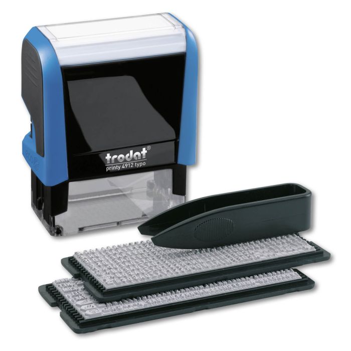 Typtryckeri Trodat 4912 "Gör det själv stämpel" med 3 & 4 mm stilhöjd. Nu kan du skapa din egna stämpel med max 4 rader på ett enkelt sätt. Både för kontoret och hemmet. • Inkl. typer och pincett • ISO 11798 Certified • Miljöinfo: Tillverkad av återvunnet material (returplast)