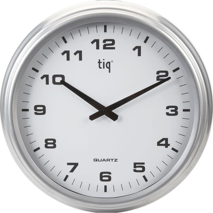 Tiq elektrisk väggklocka med Ø 35 cm, i metall för utomhusbruk. Quartzuret är eldrivet (nätadapter ingår) och analogt. Vattentåligt konventionellt quartzväggur i silverlackerad metall för utomhusbruk. Adapter (220V/50Hz, 5m kabel) ingår.