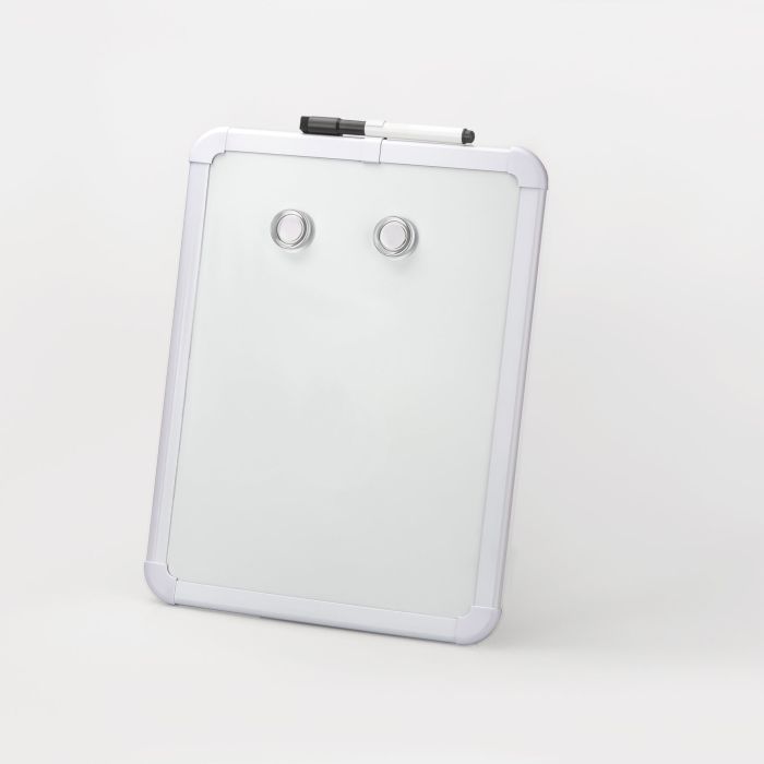 Magnetisk whiteboardtavla från . Passande storlekar för både kylskåpet, väggen, skolan, utanför kontorsdörren mm. Två magneter och penna med inbyggd taveltorkare ingår. • Vit skrivyta • Vit ram • Monteringstejp medföljer i förpackningen
